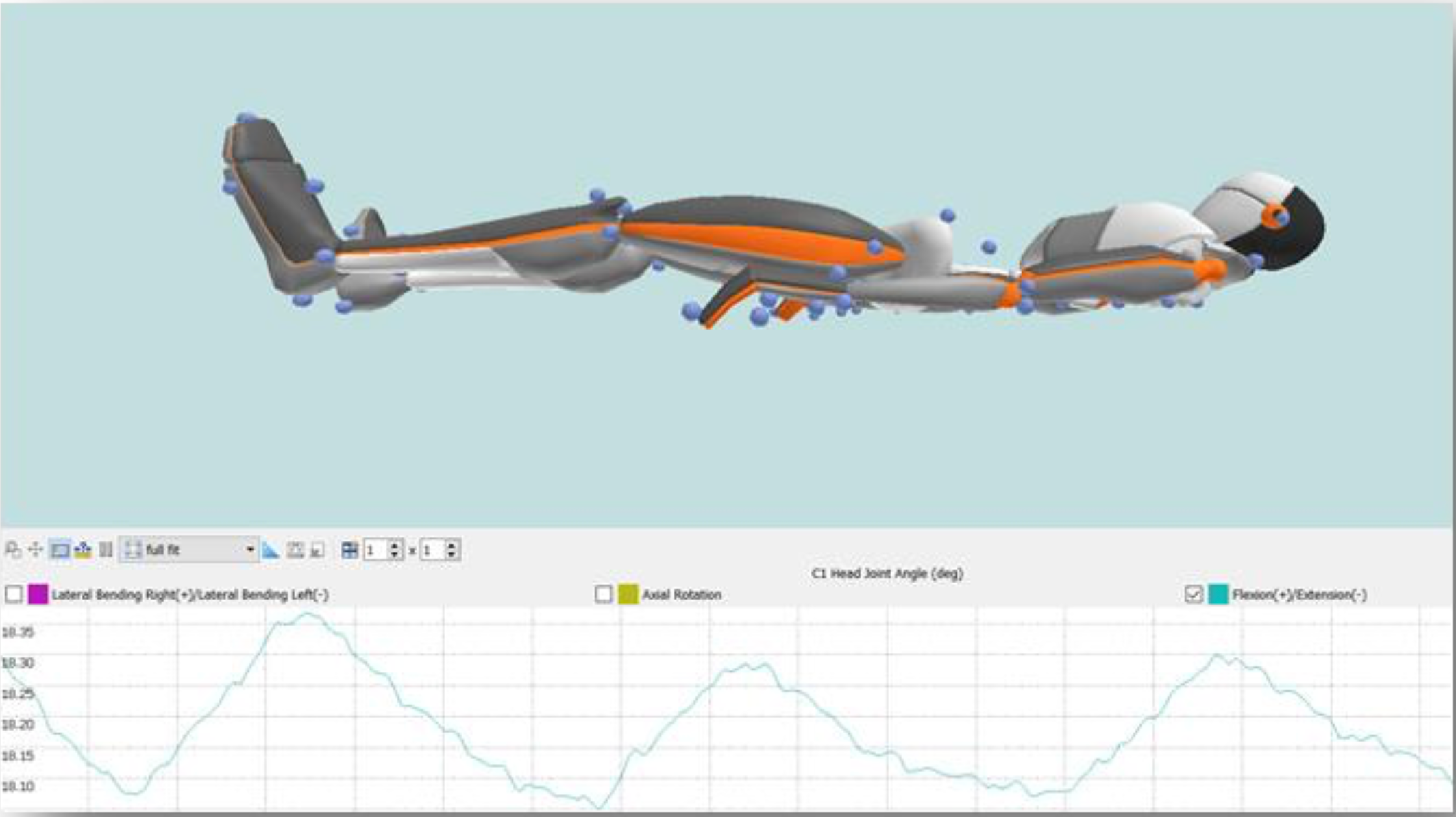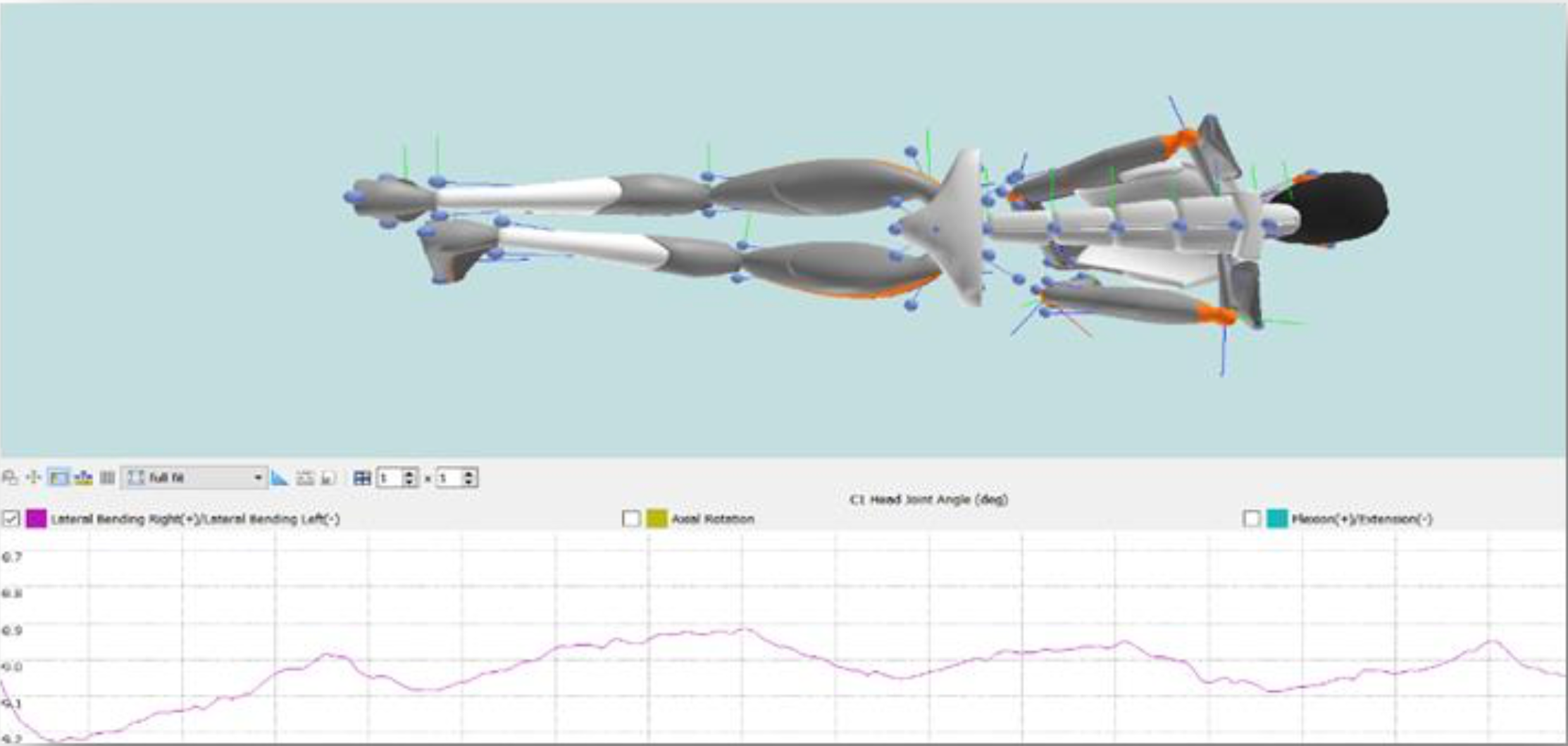 La figure suivante montre l'angle calculé entre les vertèbres cervicales C7 et le sommet de la tête, en relation avec la position latérale.